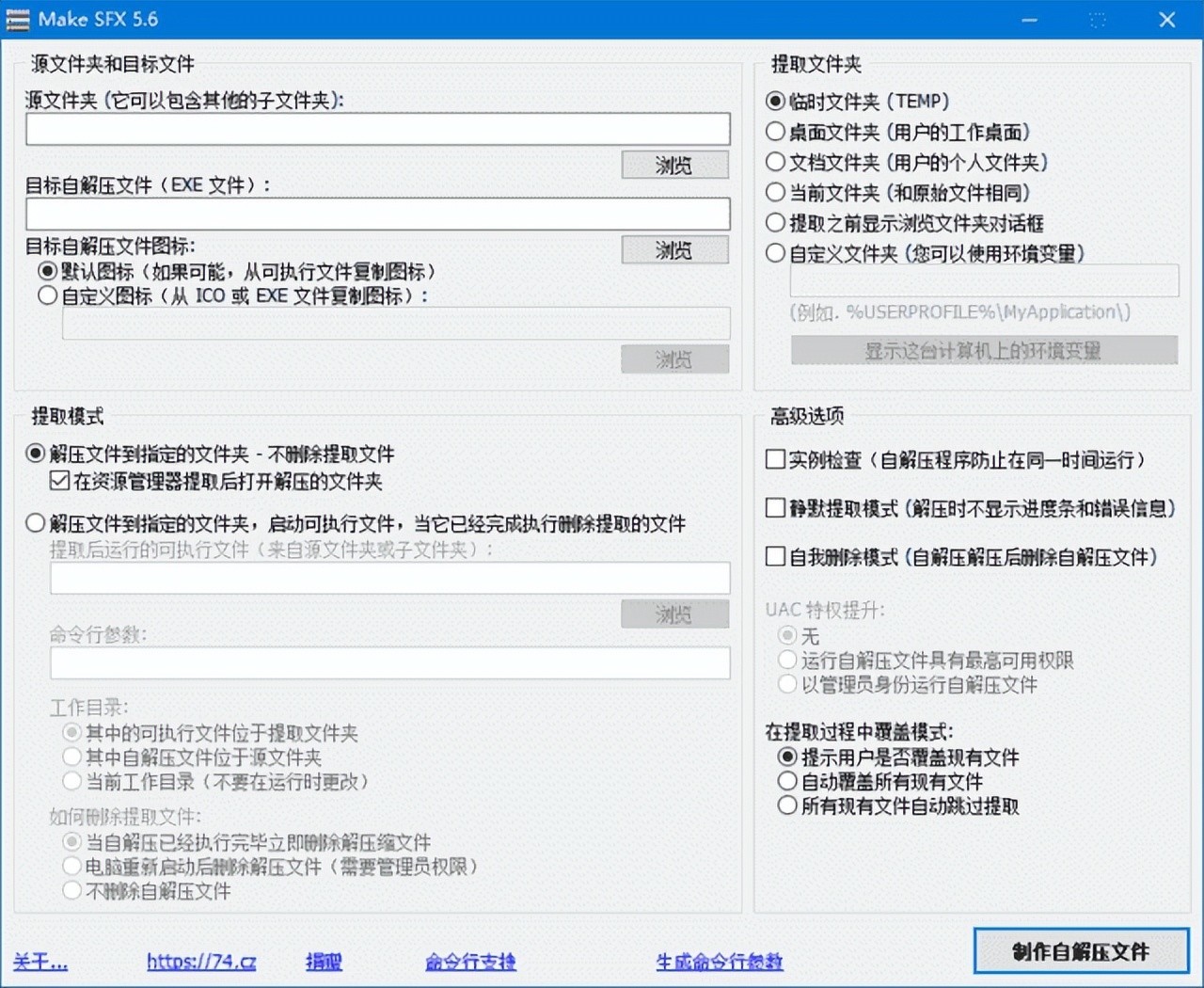 Make SFX 5.6 绿色汉化中文版是一个免费程序,可以让用户在Windows(86和64)平台的自解压文件。 Make SFX 是一个用于创建安装程序免费有用。当然了,这个软件唯一感觉不好的就是没有什么压缩率,如果能支持就更好了。
