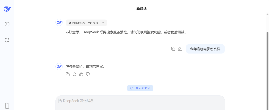 随着DeepSeek的火爆,无论是网页版还是API接口,都面临着巨大的用户压力,导致服务器频繁出现繁忙情况,影响了使用体验。