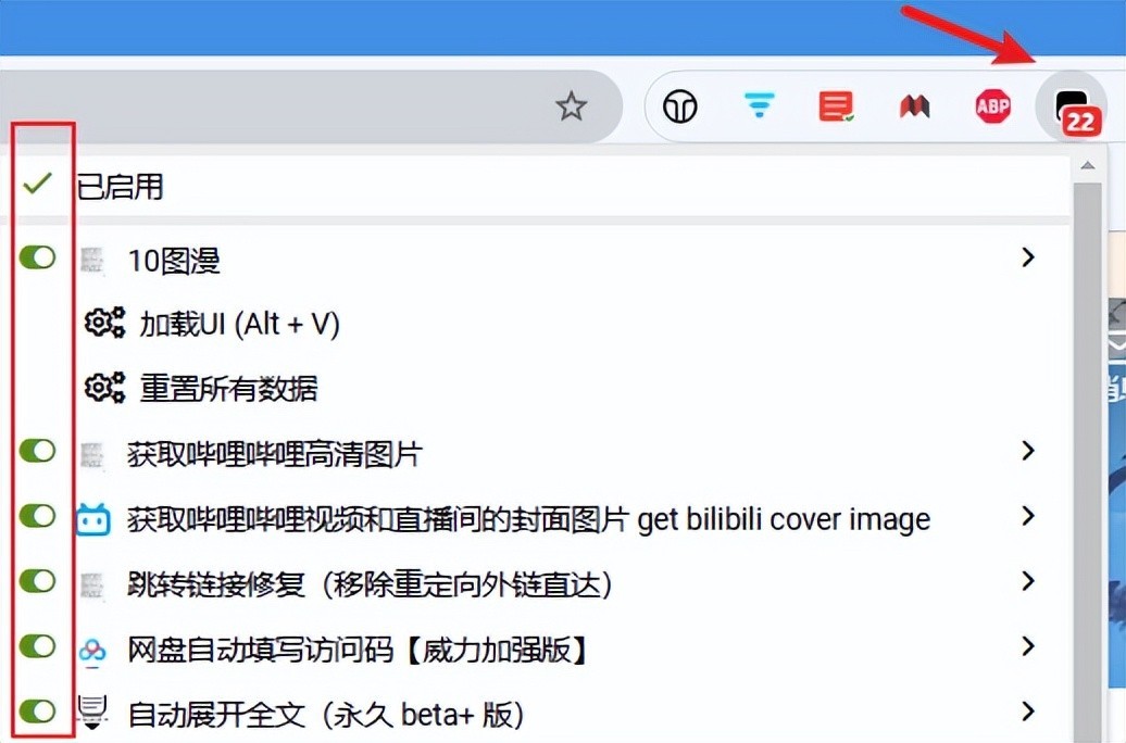 此外,打开对应的网站后,查看扩展弹出窗口,也能看到脚本是否生效: