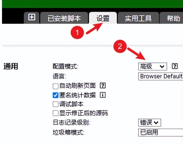 打开管理面板,在设置页面找到「通用」设置,选择配置模式为高级: