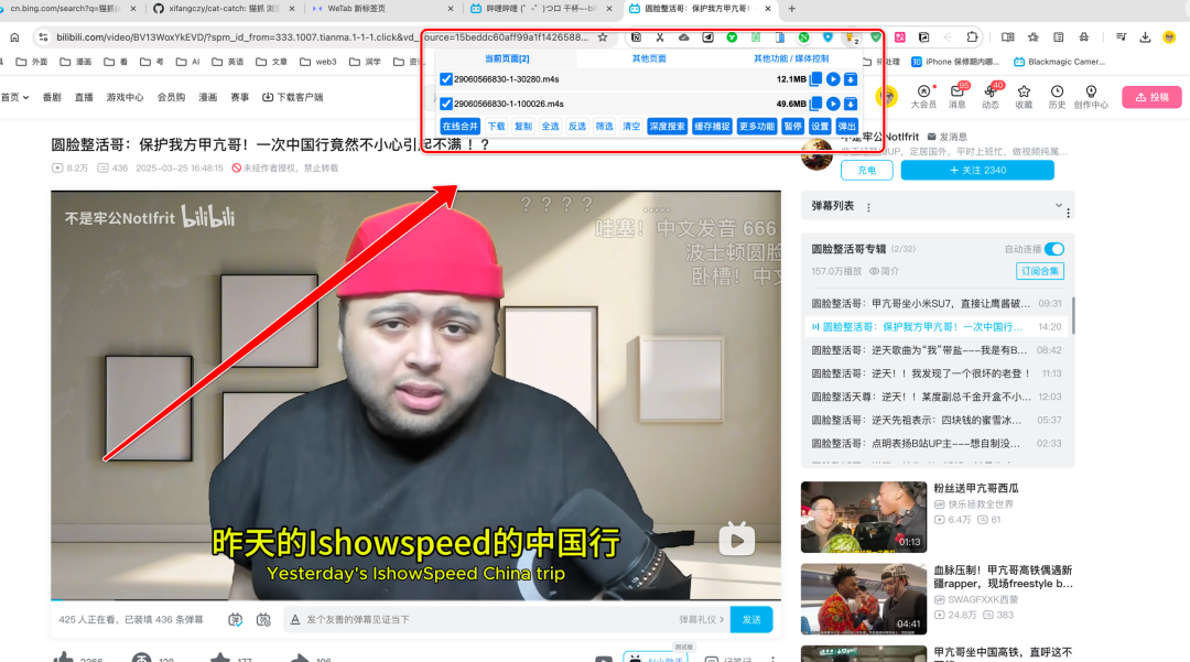一个知名的老牌资源嗅探插件。使用方法很简单,播放视频然后,点击猫抓,直接复制、预览、下载。