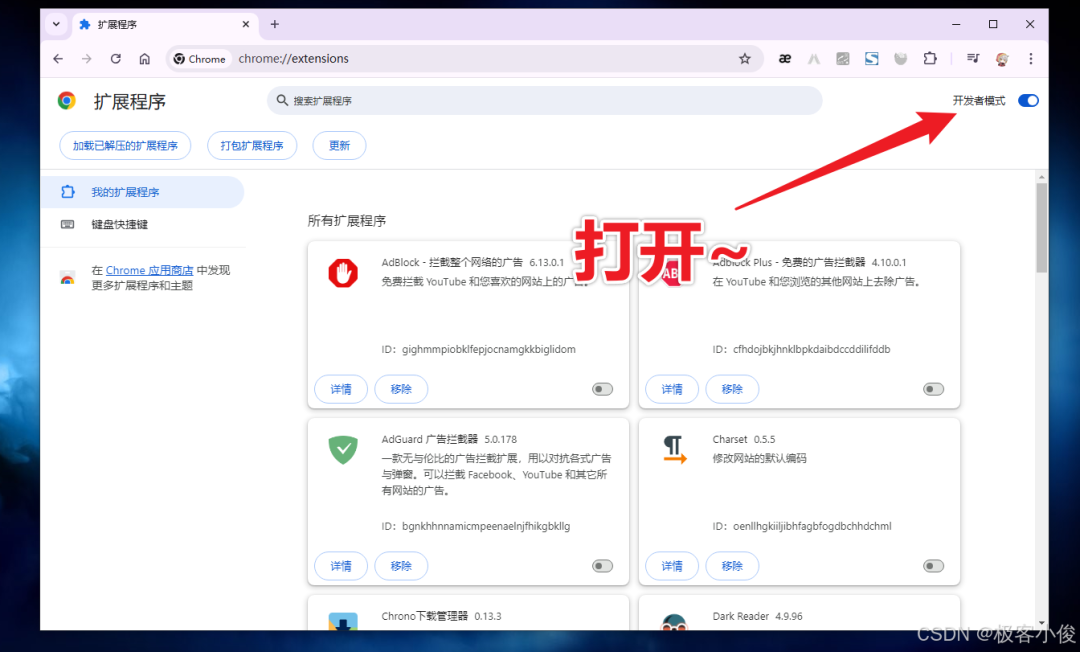 把下载好的油猴插件解压,然后直接拖拽到这里面,就像这样: