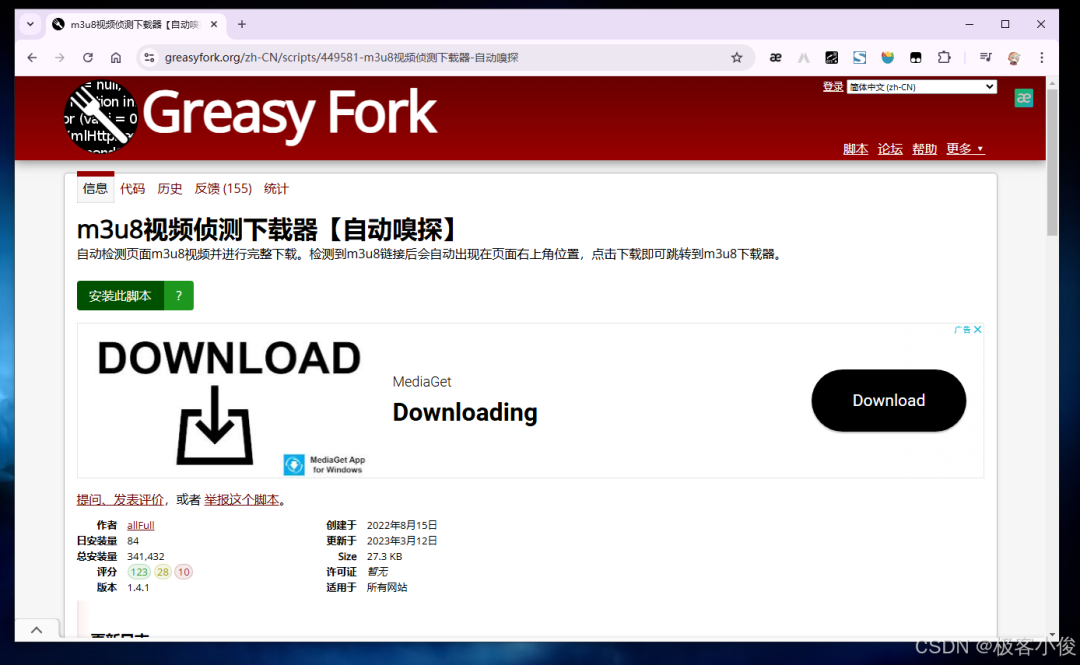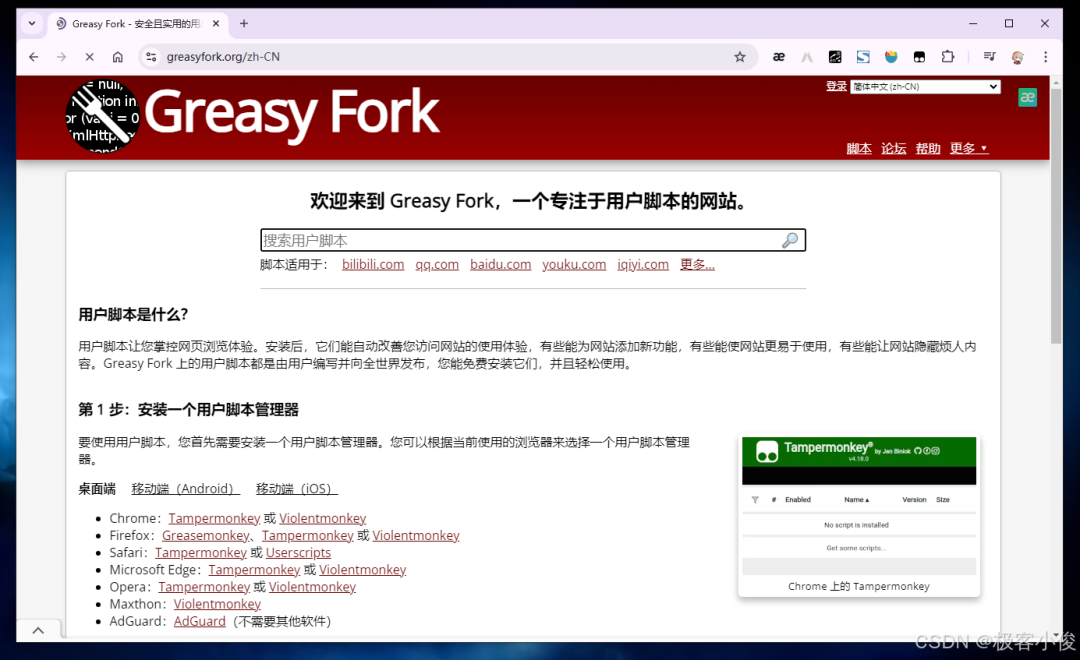 这些脚本我们可以到greasyfork这个网站去下载安装!
