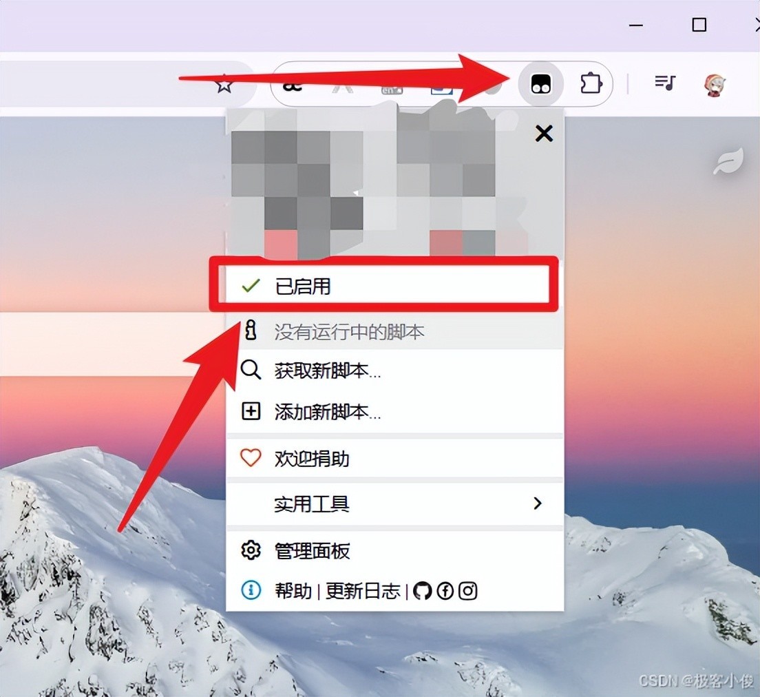 我们也可以在油猴插件中对这些已经添加的脚本功能进行管理, 打开油猴控制器,选择管理面板