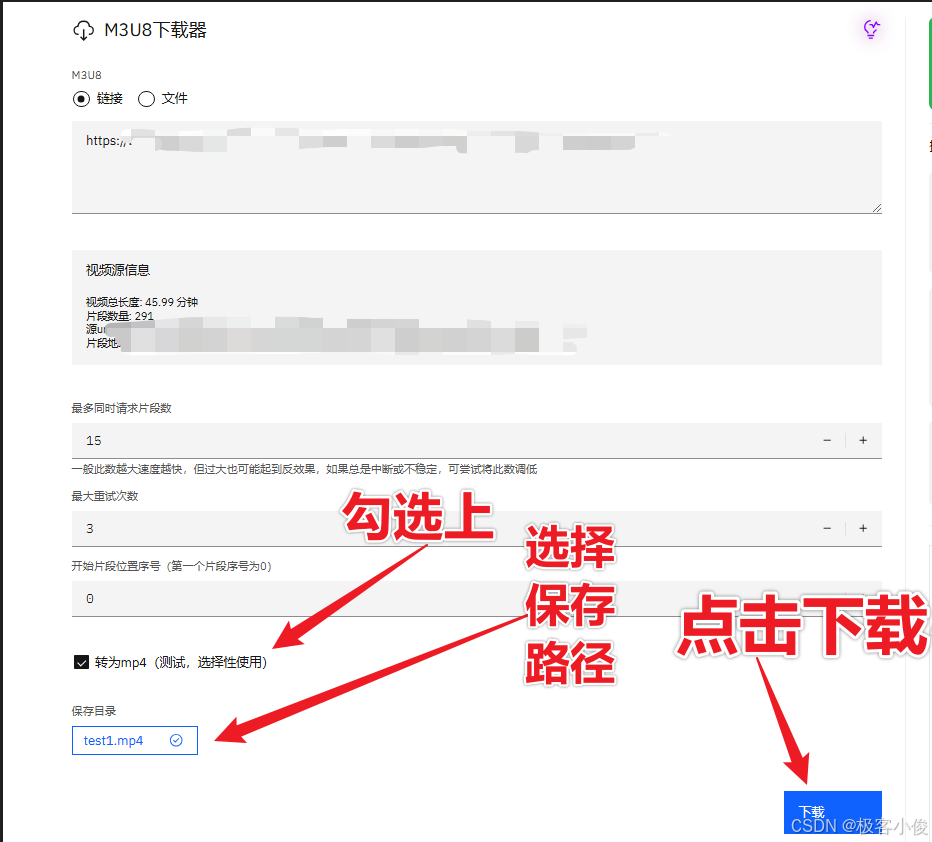 其实这个如果直接浏览m3u8视频连接的网页就会在右上角自动提示download下载!