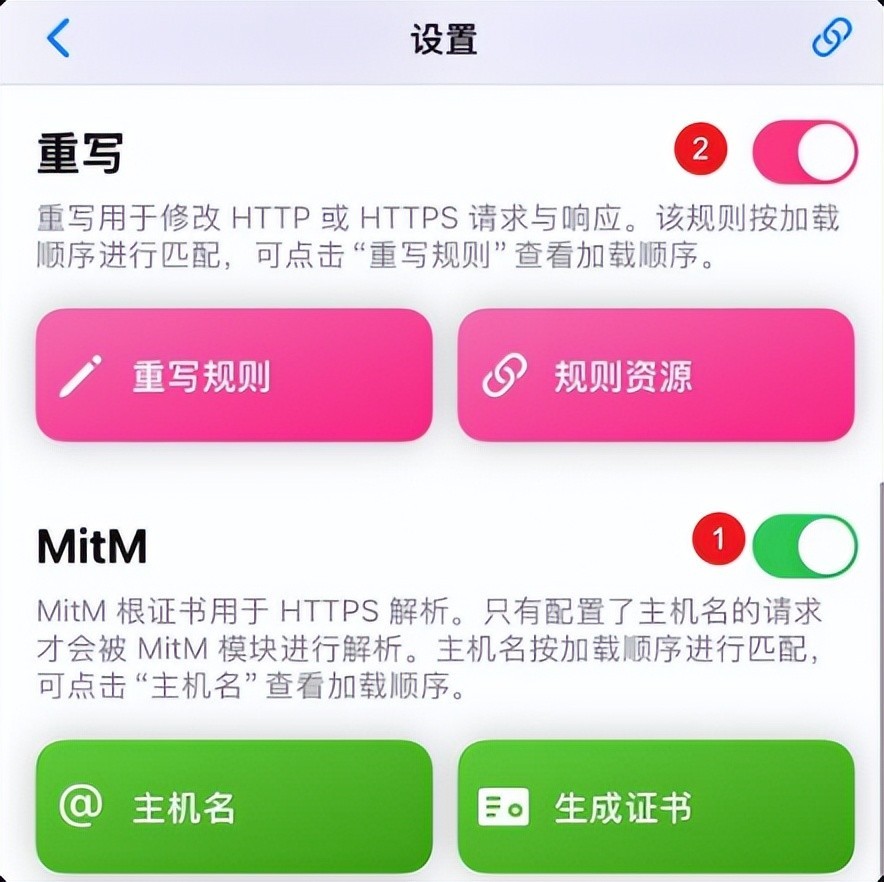 配置好后,我们开启 MitM 和「重写」功能: