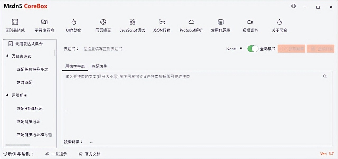 Msdn5CoreBox玄机宝盒是一个集成了多种功能的C#编程辅助工具,特别适用于C#开发者进行调试、处理正则表达式、网络请求以及系统交互等任务。它包含了一系列核心组件,如Socket通信、正则表达式操作、HTTP的POST和GET请求、JavaScript模拟、Win32API调用以及常用代码片段的快速应用。