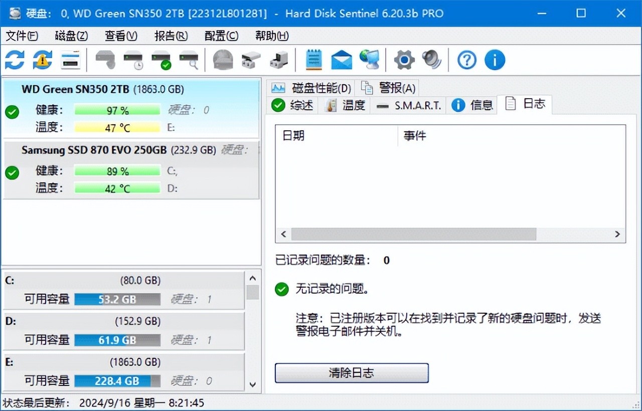 预警和警报功能:当硬盘出现故障或健康状况不佳时,会发出警报并发送电子邮件或短信通知用户。
