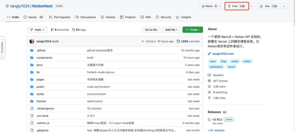 可以在Github的搜索框直接搜索NotionNext,也可以直接点击链接:https://github.com/tangly1024/NotionNext
