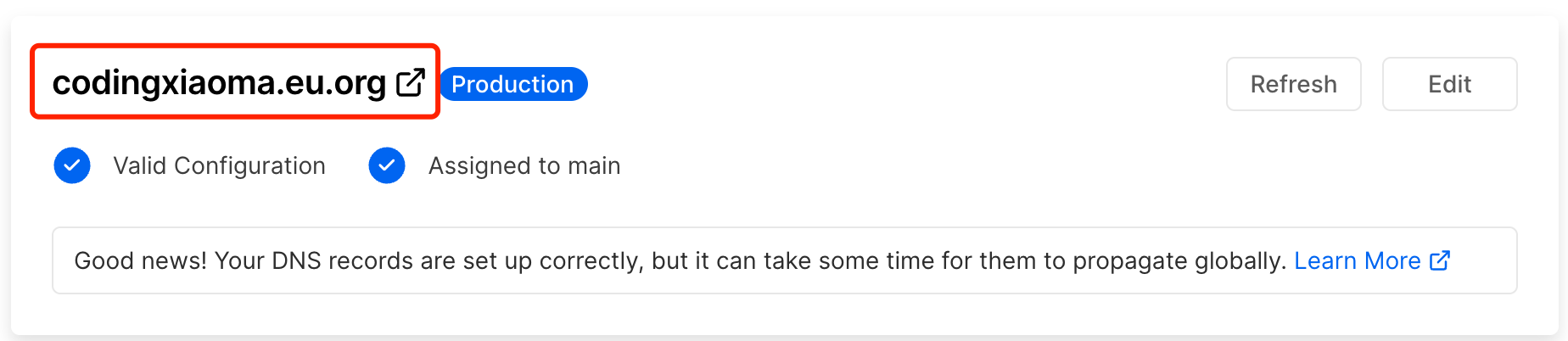 由于我的网站是部署在Vercel托管平台,所以我们需要先回到Vercel来添加域名: