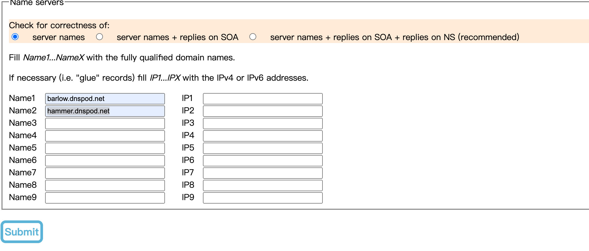 这个DNS服务器就是我们需要在eu.org填写的Name Servers