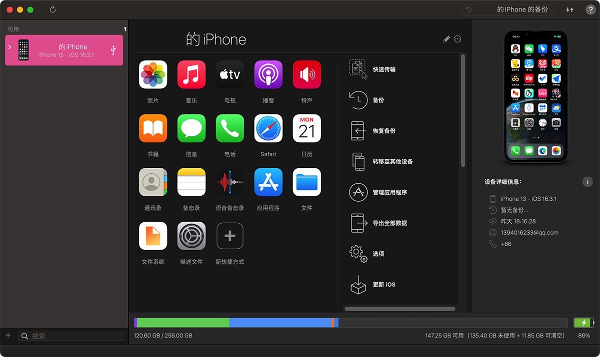 iMazing 是一款备受信任的 iPhone 管理软件,支持将消息、音乐、文件和数据从 iPhone 或 iPad 转移到 Mac 或 PC,用户可以根据自己的需求进行管理。iMazing 3 提供强大的备份、数据提取、媒体和文件传输功能,广泛应用于企业解决方案,深受超过 10,000 家组织的信赖,包括法律、IT 服务和设备管理等领域。用户可以轻松地转移照片、视频、音乐以及管理信息,自动备份和定期清理数据,甚至在企业规模下进行设备配置和监督。iMazing 还提供命令行接口、配置文件编辑和证据提取等多种功能,满足个人及商业用户的多样化需求。Digidna iMading是DigiDNA生产的功能强大的iOS设备管理器,其iMading的功能远远超过iTunes提供的功能。 它是最常用的第三方苹果助手应用程序之一,以自己的方式提供iPhone管理。 让可信软件为您传输和保存音乐、信息、文件和数据。 安全备份任何苹果手机、iPad或iPod Touch。 iMazing是一款专业的全方位iOS管理软件,性能优于iTunes。 Mac和PC兼容的iphone、ipad和ipod和iMazing使您可以轻松地浏览和管理备份、提取和打印文本消息或在苹果手机上拖放歌曲。