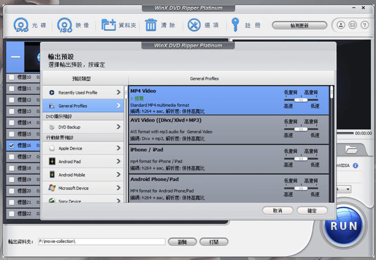WinX DVD Ripper 是一款功能完备的DVD转档/备份软件,支持从任意DVD或者DVD ISO映像文件撷取影像并转档为MP4/H.264、MKV、iTunes、MOV、FLV、MPEG、AVI等多种常用影片格式。
